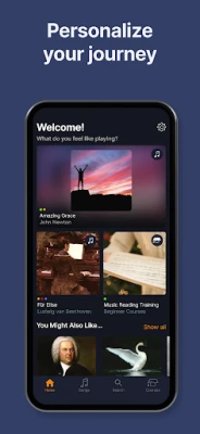 flowkey yana sa koyon piano ya zama mai daɗi da sauƙi, don kunna waƙoƙinka masu daɗi. Ko kai sabon farawa ne ko mai gogewa, darussan ƙwararrun mawaƙan piano, kayan aikin motsa jiki, da amsa kai tsaye za su taimaka maka.